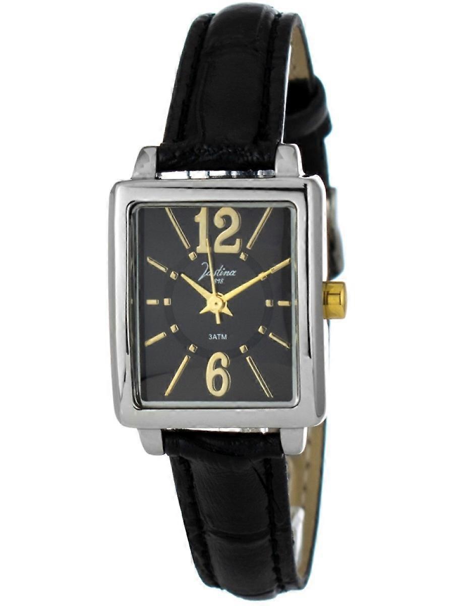 Justina Svart Äkta Läder Eller Läderimitation 21992N Damklocka