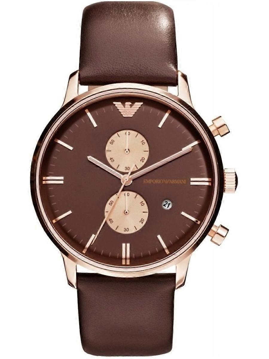 Emporio Armani Brun Äkta Läder Eller Läderimitation AR0387 Herrklocka