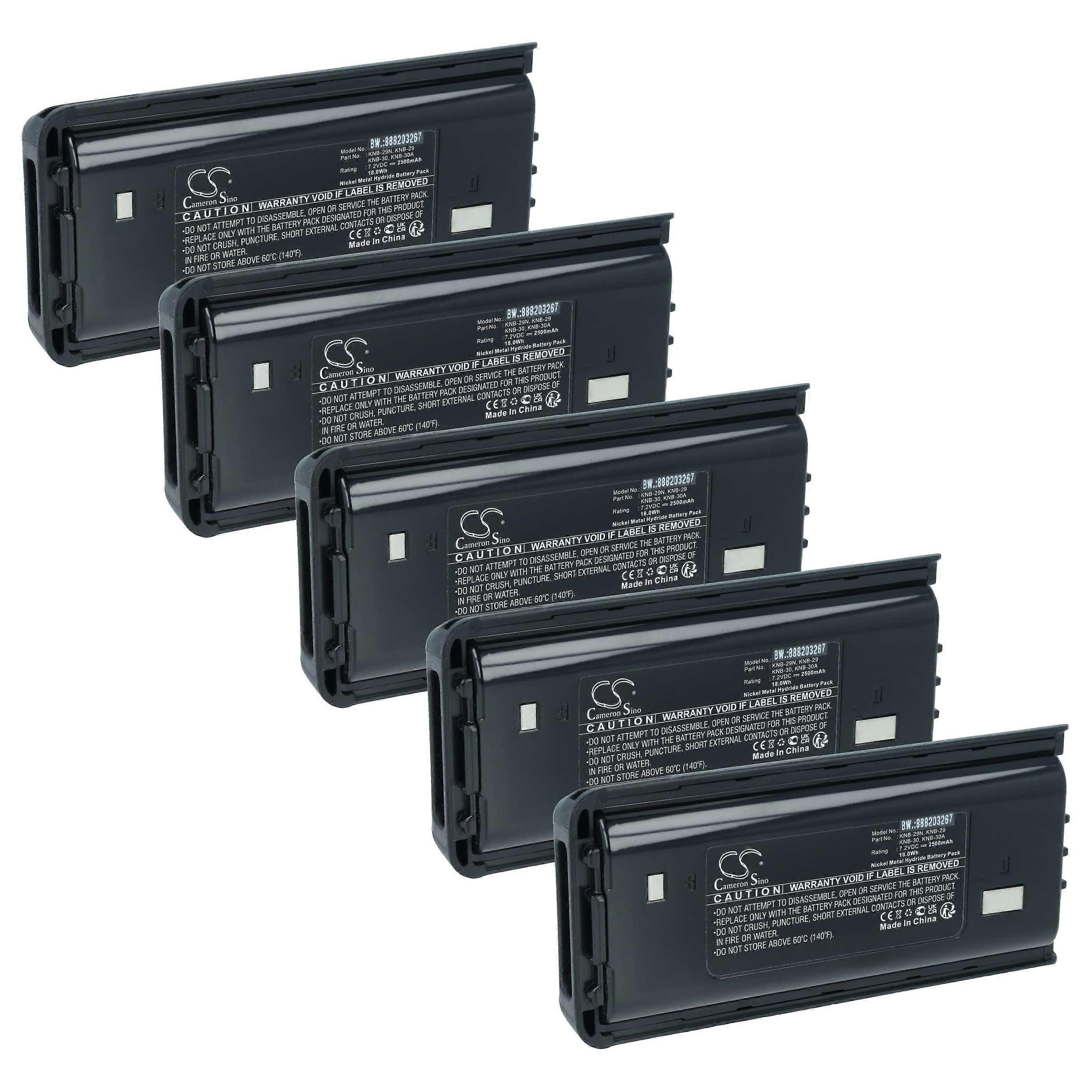 vhbw 5x Akku kompatibel mit Kenwood TK-2307M, TK-3202E, TK-3200LP, TK-3202, TK-3200, TK-3201 Funkgerät, Walkie Talkie (2500 mAh, 7,2 V, NiMH)
