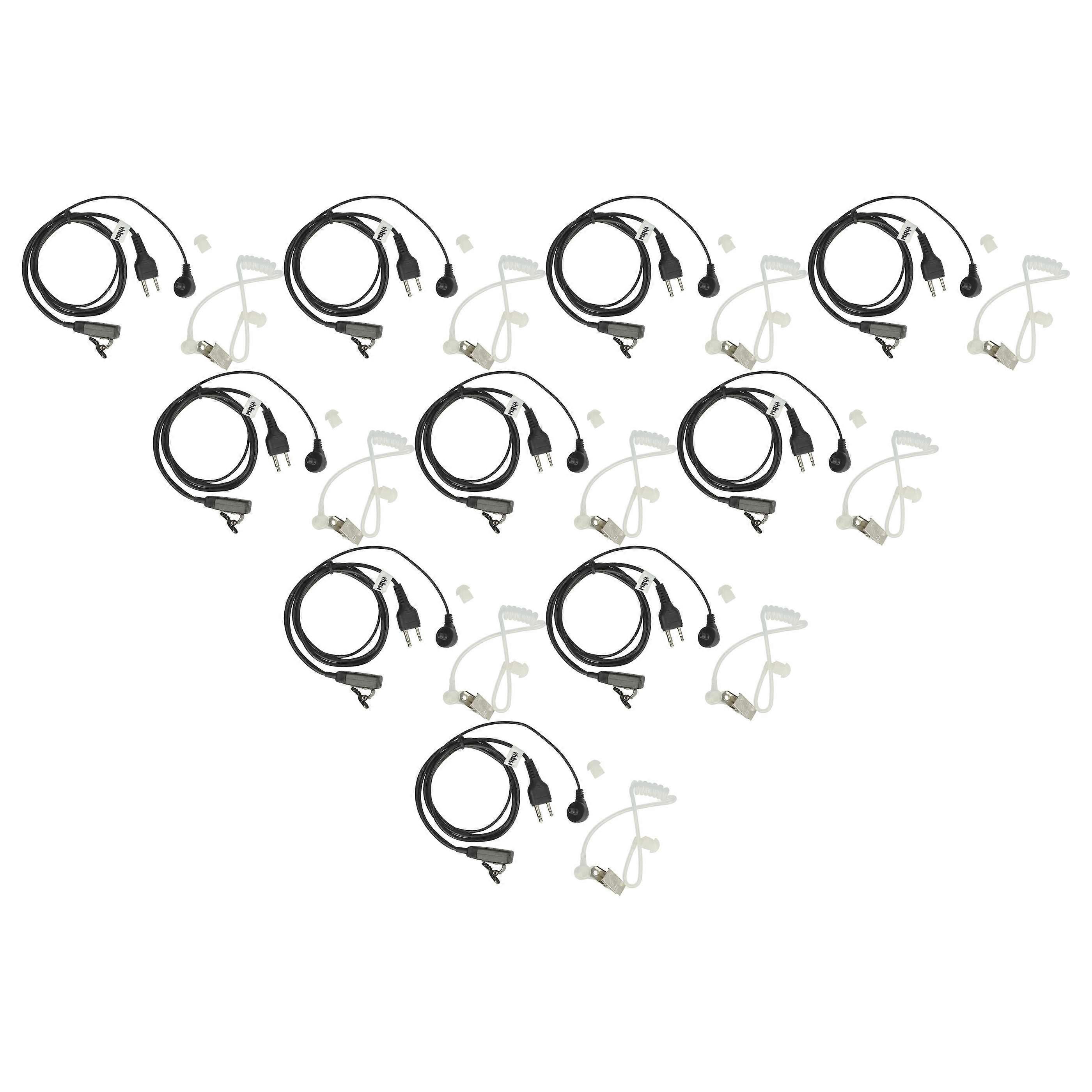 vhbw 10x Headset kompatibel mit Hytera HYT TC-980 Funkgerät - schwarz, Transparenter Akustikschlauch