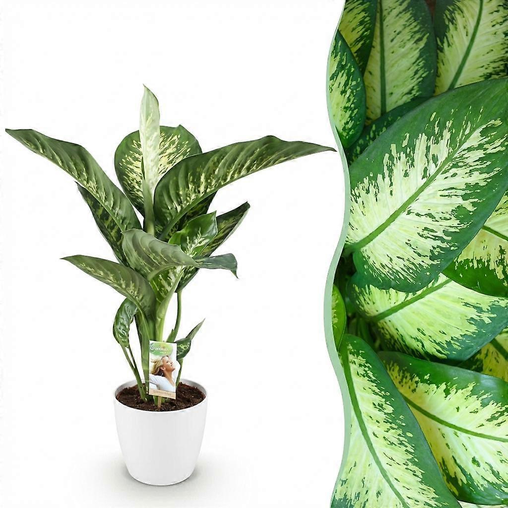 Diefenbachia Tropic Snow - Dieffenbachia - Weinig onderhoud - Groen - met Potter Wit - 90-100cm - Ø21cm