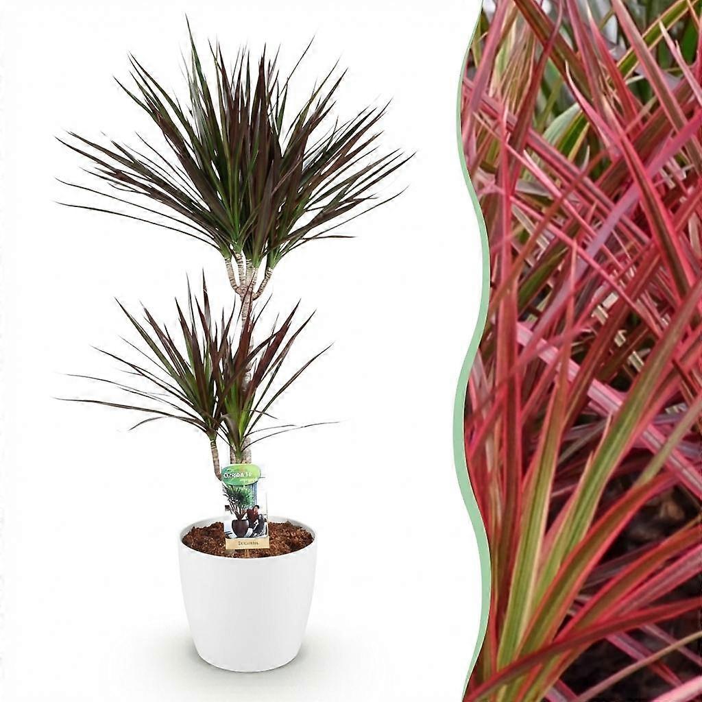 Dracaena Magenta - Drakenbloedboom - Weinig onderhoud - Groen - met Potter Wit - 90-100cm - Ø21cm - Kamerplant - Arrangement - Plant met pot Dracaena Magenta - DrakenbloedboomHoogte: 90-100 cm | Potmaat: 21 cm | Inclusief witte sierpot Breng een vleugje tropische sfeer in huis met de Dracaena Magenta, ook wel bekend als de Drakenbloedboom 🐉. Deze prachtige kamerplant heeft sterke, donkergroene bladeren met een subtiele paarsrode gloed aan de randen. Dankzij het moderne design van de witte sierpot past hij perfect in elk interieur – van strak modern tot gezellig bohemien. ✓ Weinig water nodig – ideaal voor plantenliefhebbers zonder groene vingers✓ Zuivert de lucht – zorgt voor een frissere leefomgeving 🌿✓ Groeit goed bij weinig licht – perfect voor kamers met minder zon✓ Duurzaam en sterk – een echte overlever✓ Met sierpot – direct klaar om neer te zetten VerzorgingstipsZet de Dracaena op een lichte plek, maar vermijd direct zonlicht. Geef pas water als de bovenste laag van de aarde droog aanvoelt. In de winter heeft hij nog minder water nodig. Af en toe sproeien helpt tegen stof op het blad. Let op: De Dracaena Magenta is giftig voor huisdieren 🐶🐱. Houd de plant dus buiten bereik van katten en honden. Met de Dracaena Magenta haal je een stijlvolle én makkelijke plant in huis, die jarenlang meegaat