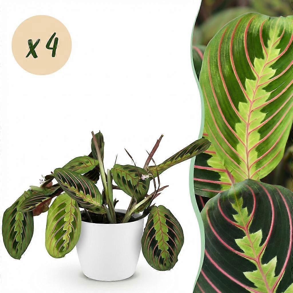 Maranta Fascinator Tricolour - Gebedsplant - Huisdiervriendelijke Plant - Groen - 4 Planten - met Potter Wit - 25cm - Ø12cm