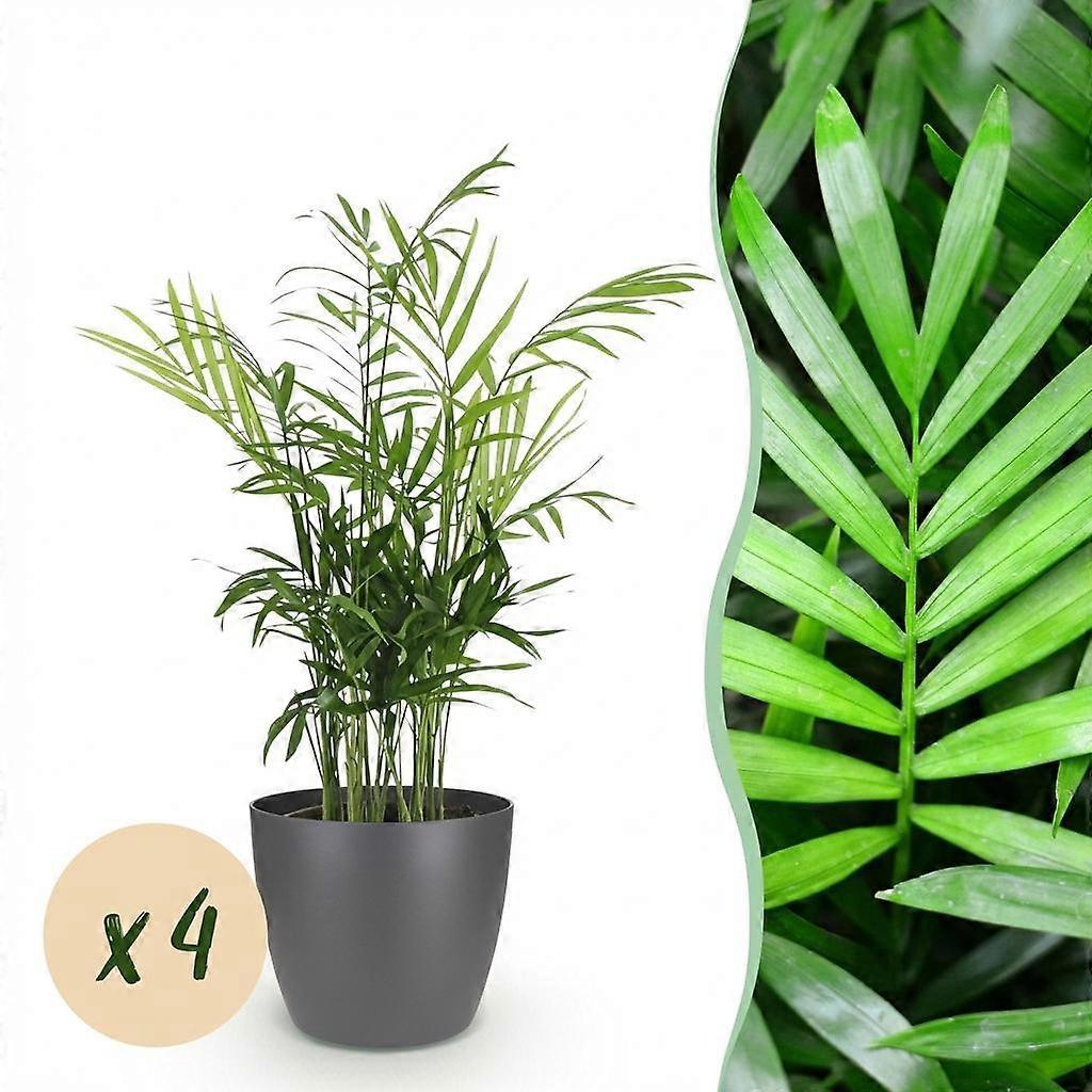 Chamaedorea elegans - Goudpalm - Huisdiervriendelijke Plant - Groen - 4 Planten - met Potter Grijs - 15cm - Ø12cm