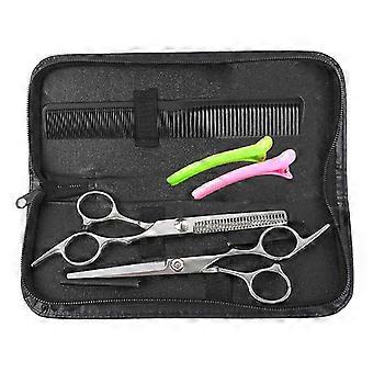 1 set of 6pcs professional tooth cutting scissors set ergonomics handle hairdressing scissor comb kit portable hair styling tools kit practical hair s