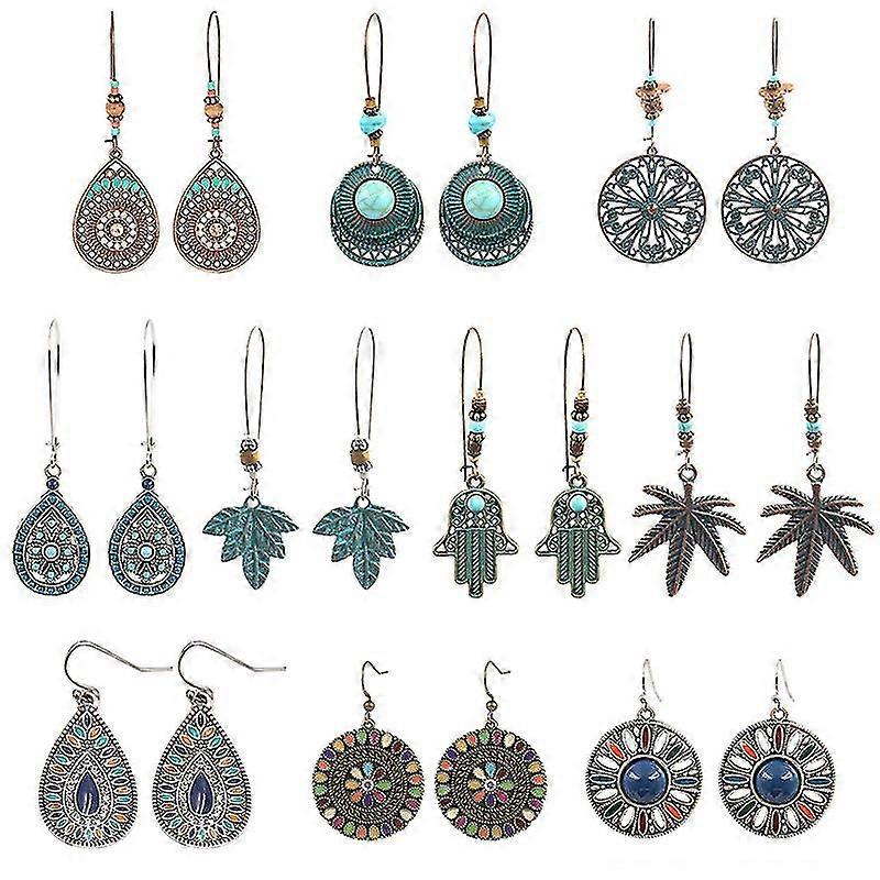 10 Pairs Bohemian Vintage Dangle Earring Set Retro Earrings Boho Dangle Drop Earrings For Women Gir