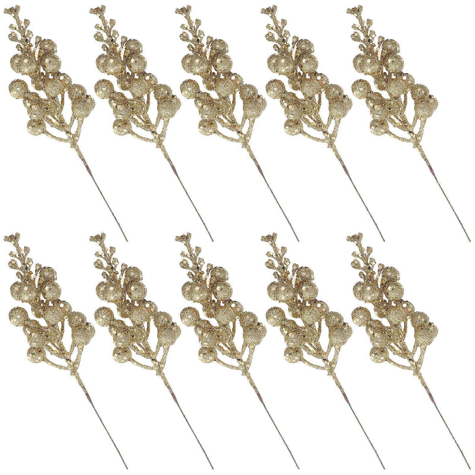 10pcs Artificial Christmas Berry Stems with Snowflake Effect – Realistic Faux Berries for Xmas Tree, Holiday Decor, Home, Office, Party, Winter
