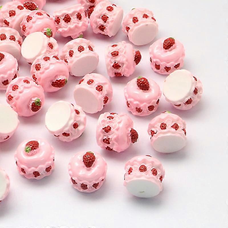 10pc Strawberry Cake Resin Decoden Cabochons with Random Color Bottom Imitation Food 16x15mm Pink 16x15mm