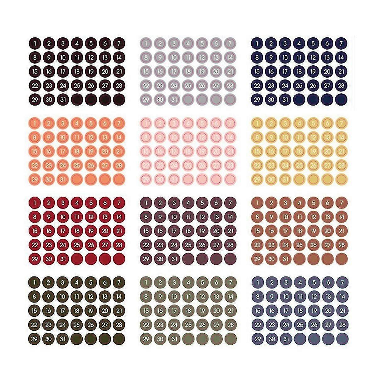12PCS Colorful Round Number Date Sticker Journal Notebook Label Stickers Stationery Envelope Sealing Tags A