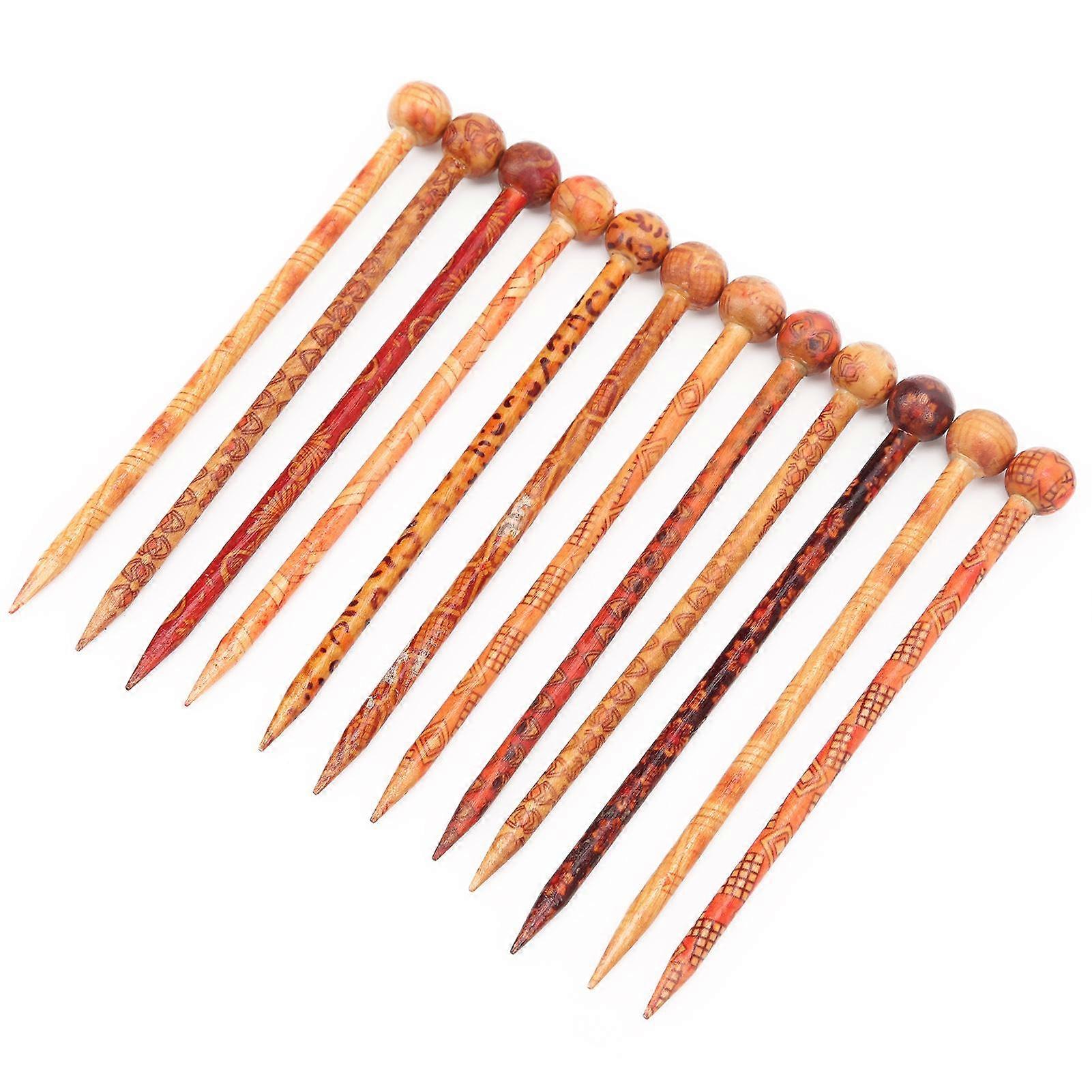 12 Pcs Hair Stick DIY Retro Printed Wooden Folk Style Elegant Temperamental Ladies Decorations
