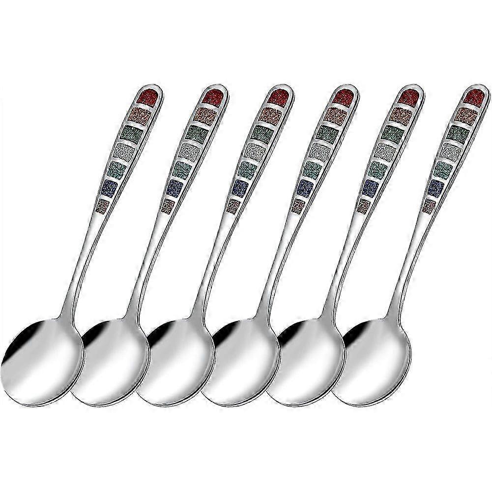 7.24" Colorful Enamel European Soup Spoons, Stainless Steel, Dishwasher Safe