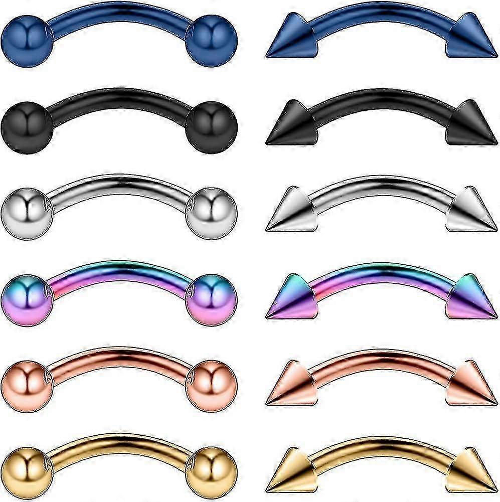 12pcs 14g Surgical Steel Eyebrow Ear Lip Ring Body Piercing Jewelry G