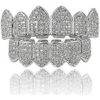 18k Gold Plated Macro Pave Cz Iced-out Grillz With Extra Molding Bars Included