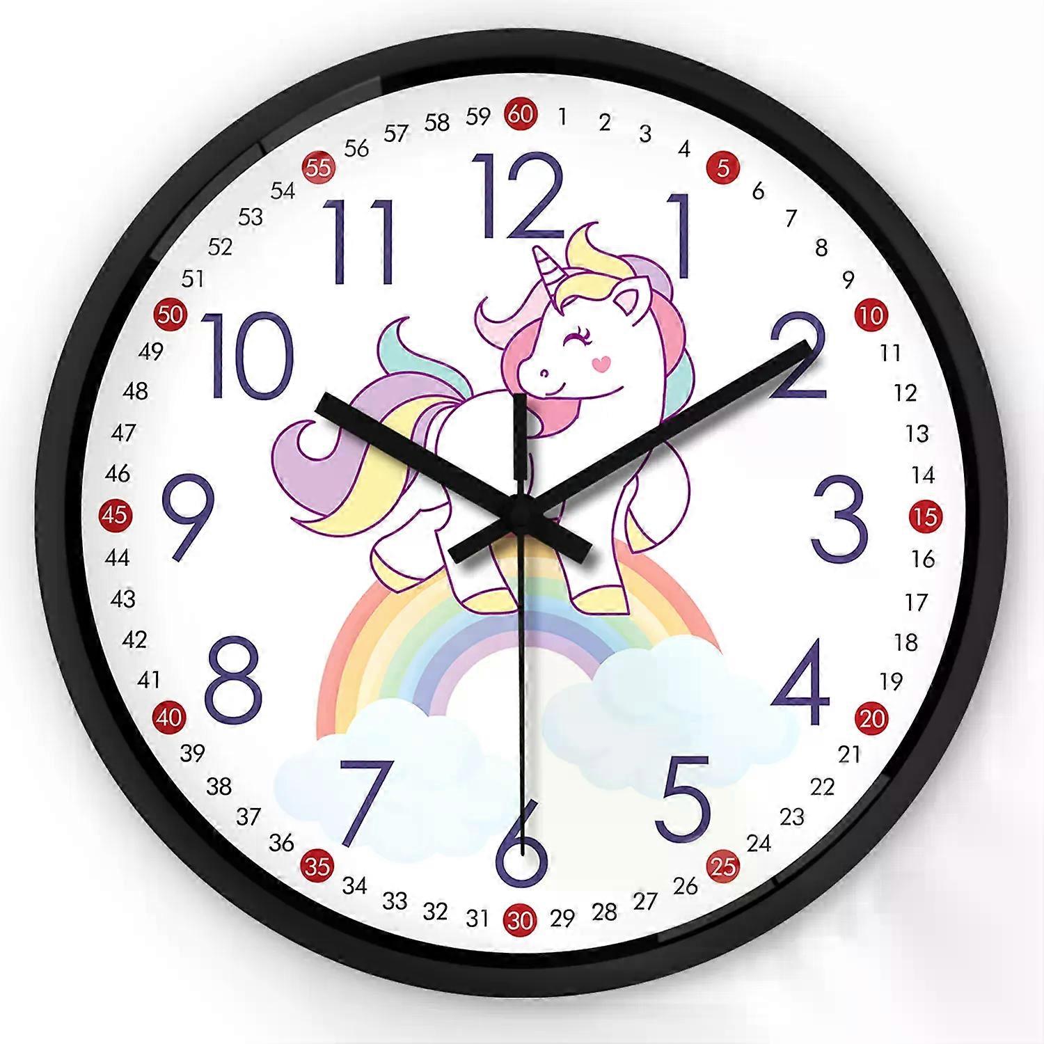 1Pc 8Inch Minor Clock Wall Clock, the Rainbow Unicorn Design Wall Clock, Wall Clock, Silent Clock, for Living Room Bed