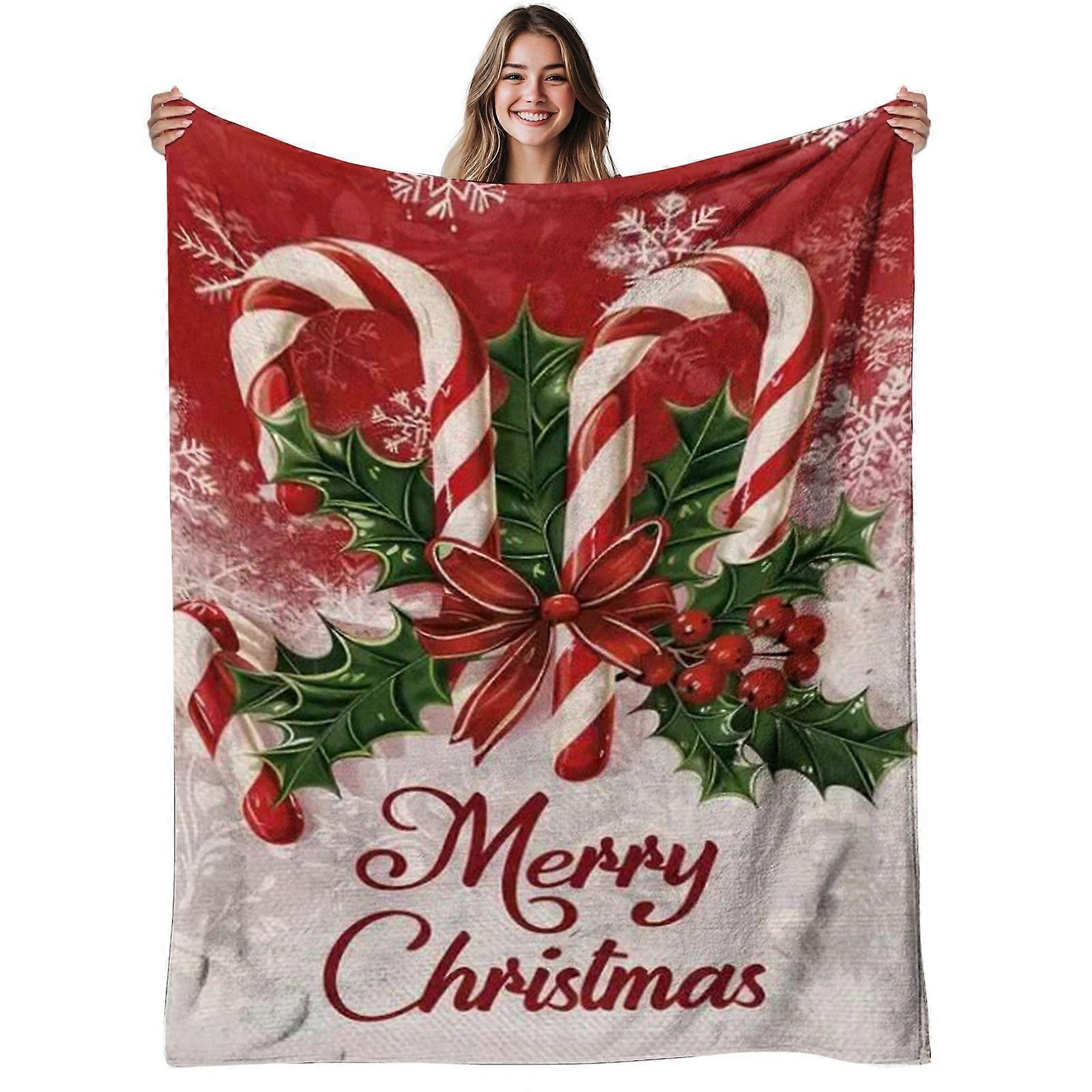 1pc Candy Cane Flannel Blanket | Soft, Warm, Holiday Holly Snowflake Print, Polyester, 280gsm, All-Season Use, Ideal for-qacvbg238