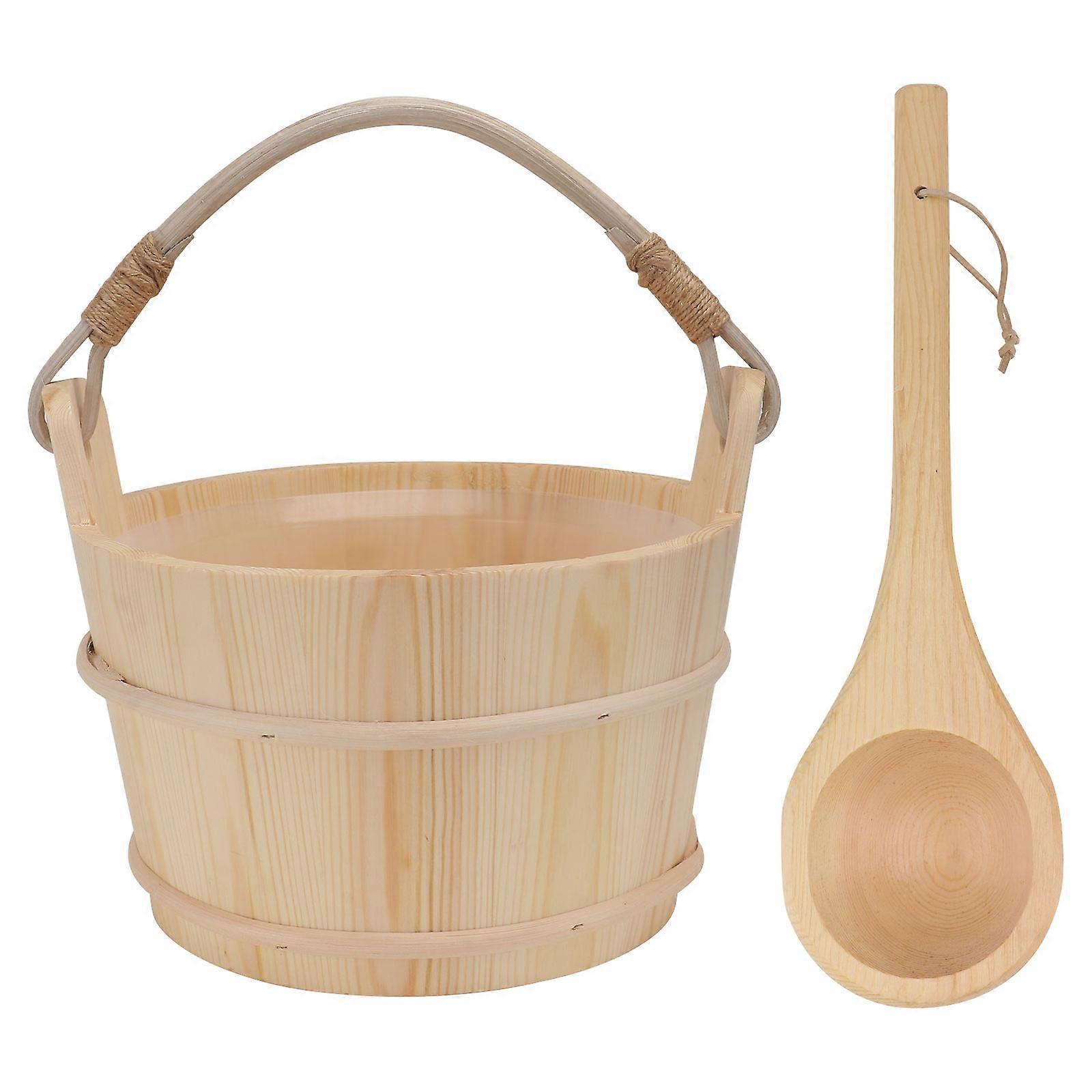 1Set Wooden Barrel Spoon Bathing Barrel Set Special Barrel for Sauna Room