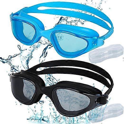 2 pcs Swimming Goggles, Anti-Fog Adult Swimming Goggles, Comfortable Swimming Goggles, for Adults, Men, Women, Youth (Black, Blue)