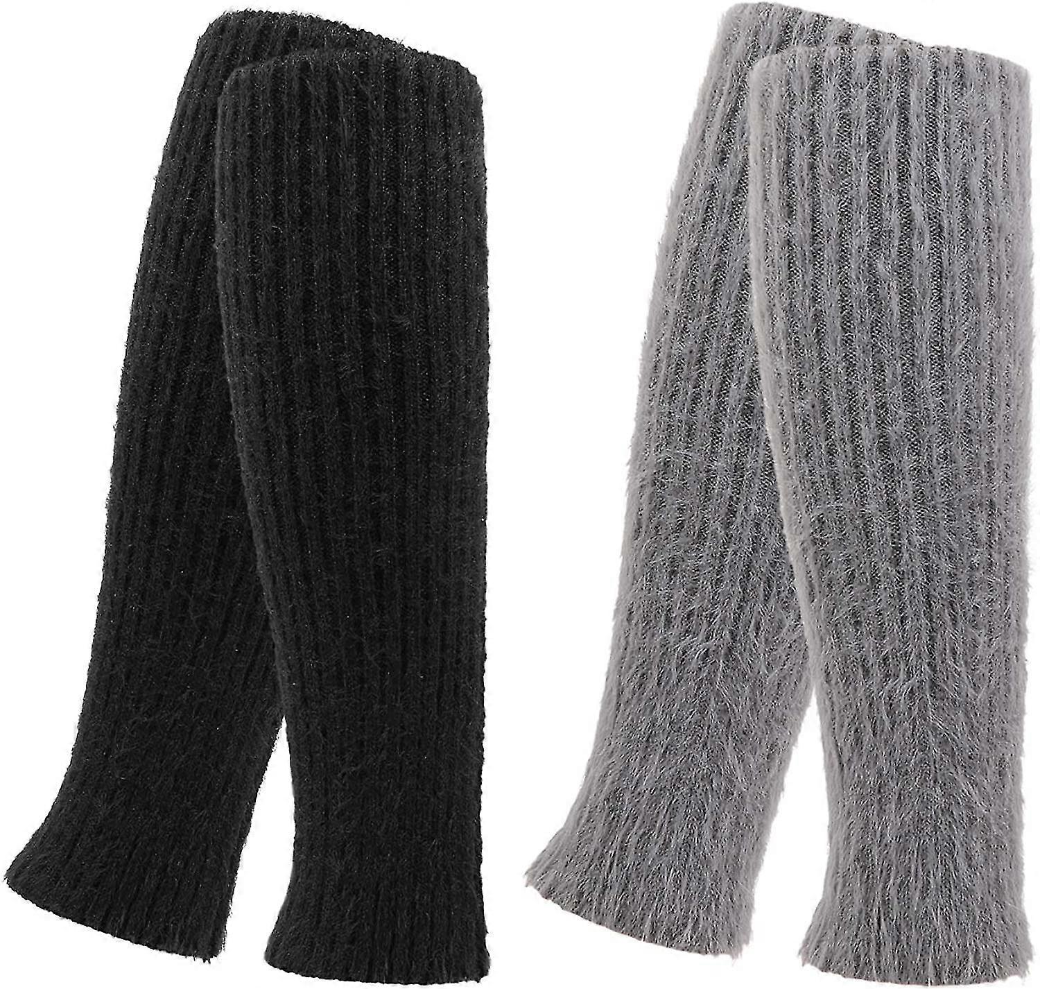 2 Pairs Fluffy Ankle Leg Warmer, Winter Knit Crochet Women's Leg Warmer Knee High Leg Warm