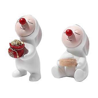2 Pieces Rabbit Figurine Red Nose Rabbit Statue Easter