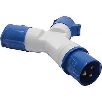 2-Way Splitter 16A 220v IP44 2 Way 3 pin Industrial Site Plug & Wall Socket