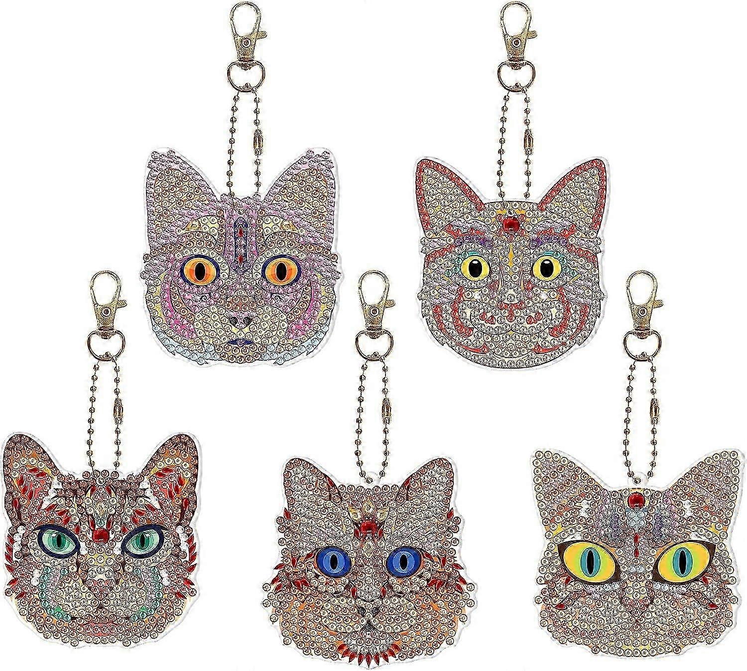 2025 5 Pcs 5D Diamond Art Keychains Hanging Ornaments DIY Kits Wolf Diamond Painting Key Chains Ring Pendant Double Sided Crystal by Number Mosaic Art