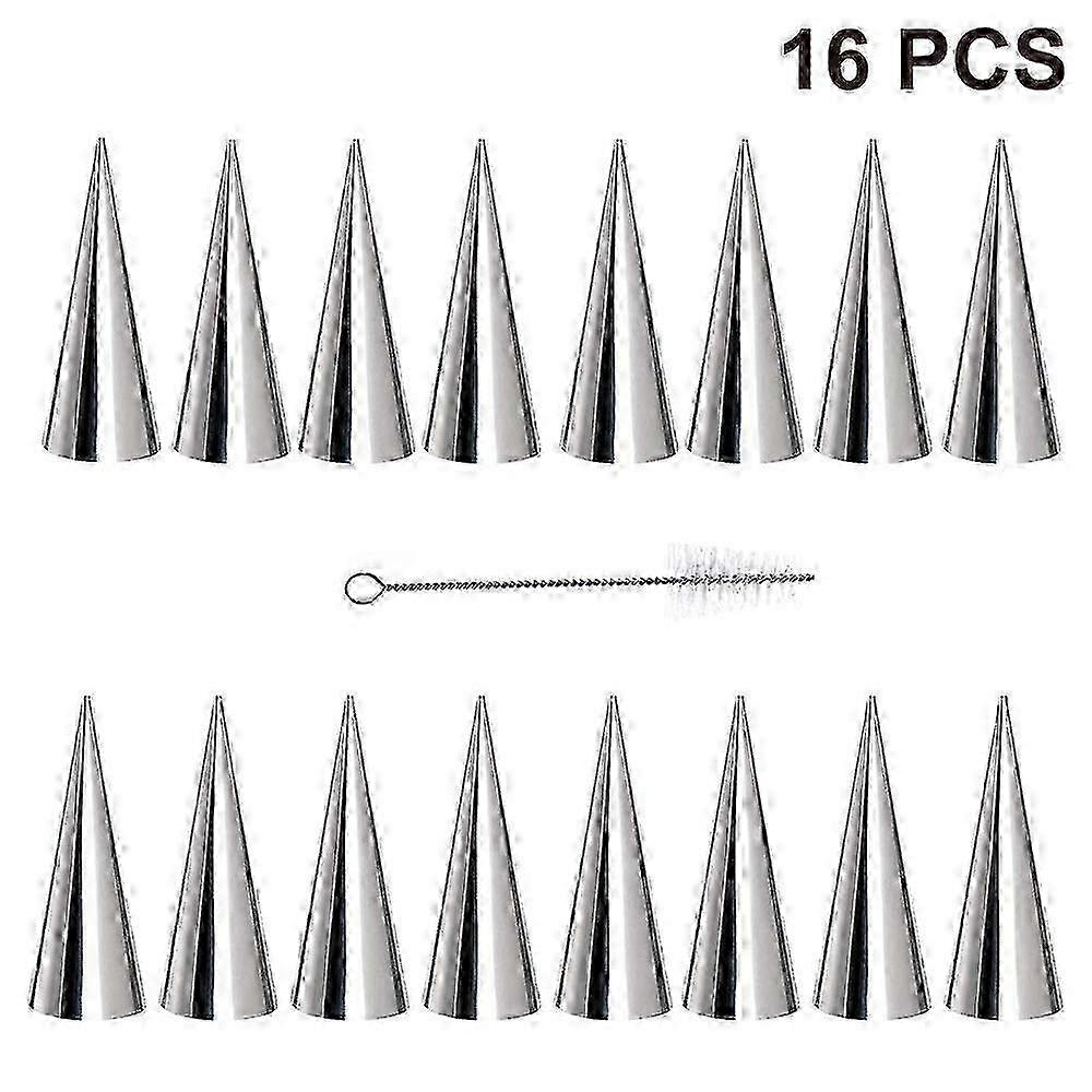 2025 16 Pack Cream Horn Molds, 5.5 Inch Baking Cones Cream Horn Forms, Stainless Steel Tubes Ice Cream Mold With 1 Cleaning Brush