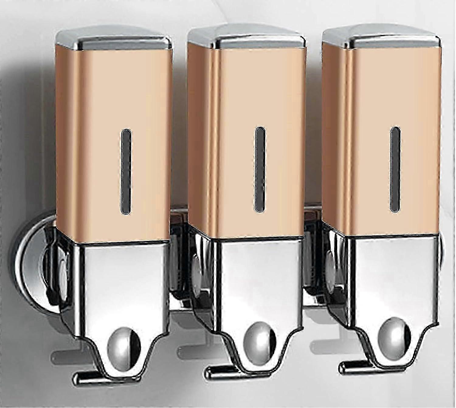 2025 3-in-1 Shower Soap Dispenser Wall Mounted with Labels, Shower Dispensers for Shampoo, Conditioner and Soap, Drill Free Shampoo and Conditioner Di