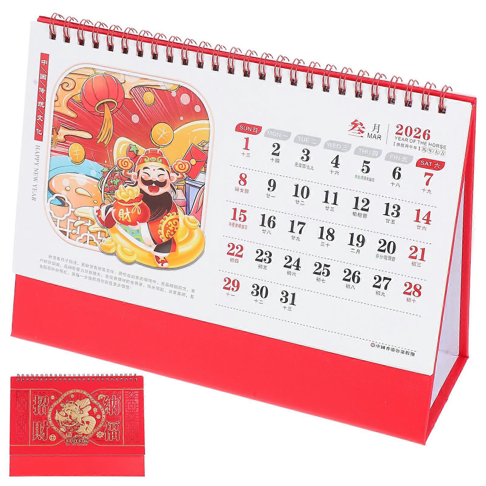2026 Standing Flip Calendar for Office 4Pcs Red Paper Desk Calendar