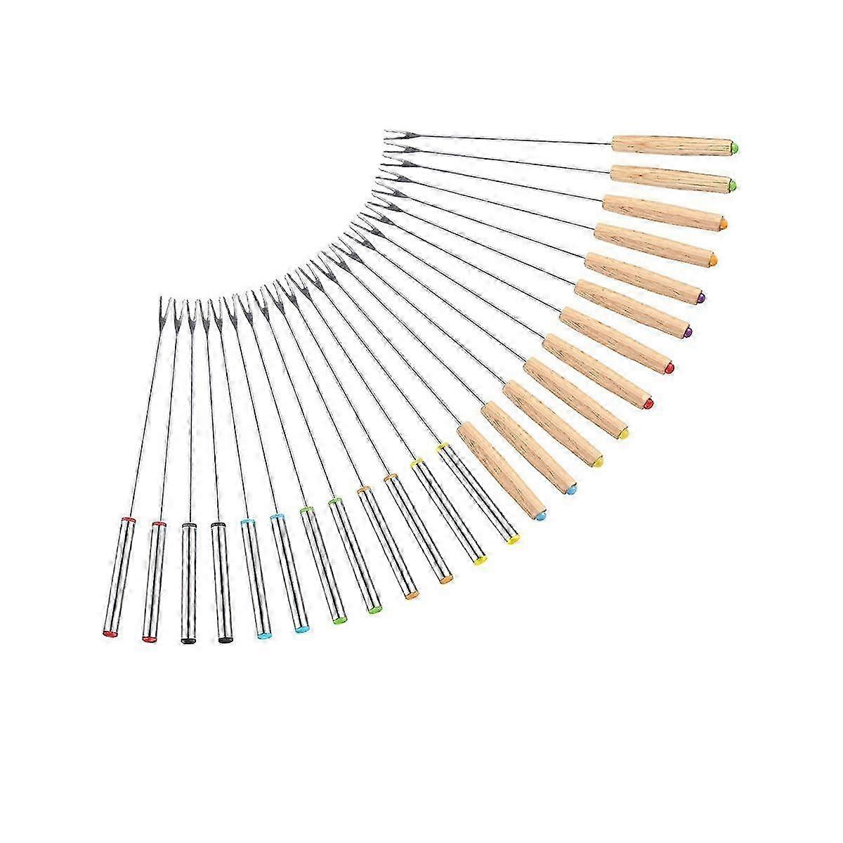 24 Pack Stainless Steel Fondue Forks, 12 Wood Handles And 12 Stainless Steel Handles, Heat Resistan