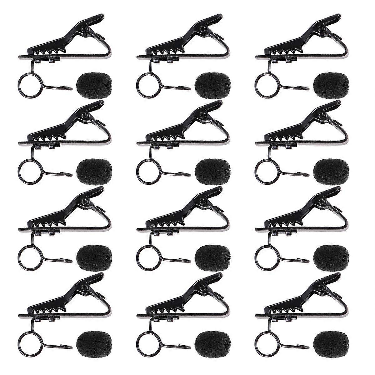 24Pcs Microphone Lapel Tie Clip Universal Mini Lapel Lavalier Microphone Mic Clip Iron Clip Black12Pcs Clips + 12Pcs Sponge Covers