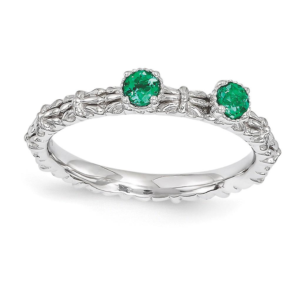 2.5mm 925 Sterling Silver Polished Prong set Stackable Created Emerald Two Stone Ring-Stackable-Ring for Women - Ring Si