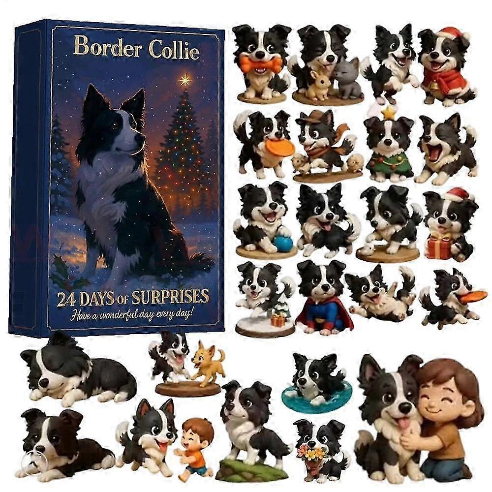 2D Plane Borders Collie 2025 Countdown Calendar 24 Different Acrylic Dog Pendant Xmas Advent Calendar Dog Lovers Xmas Gift