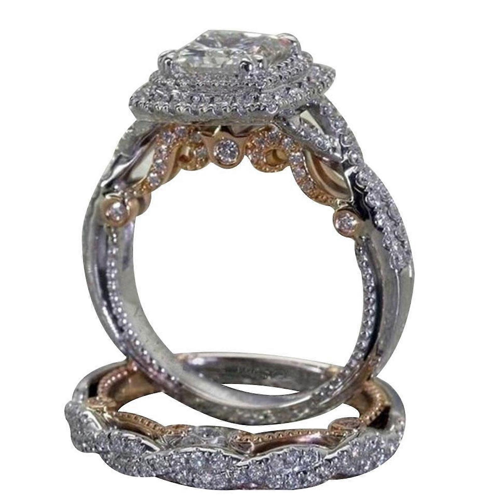 2Pcs Finger Rings Square Rhinestone Ladies Sparkling Electroplating Princess Rings for Wedding