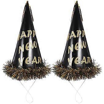 2pcs New Year Party Hats with Gold Foil Tassels – Lightweight Paper Caps for Celebrations, Family Gatherings, and Festive Photo Props