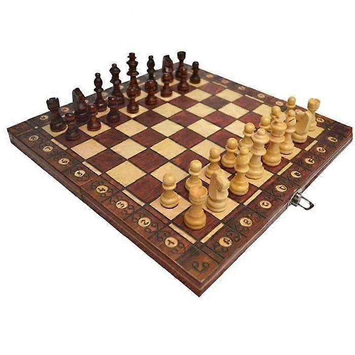 3-in-1 Magnetic Folding Chess Board, Wooden Folding Chess Set, Brown Holess Board Set, 24 x 24 cm