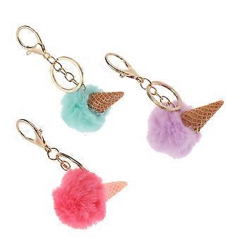 3 Pcs Adorable Bag Keys Decorative Plush Ice Cream Hanging Pendants Key Chains