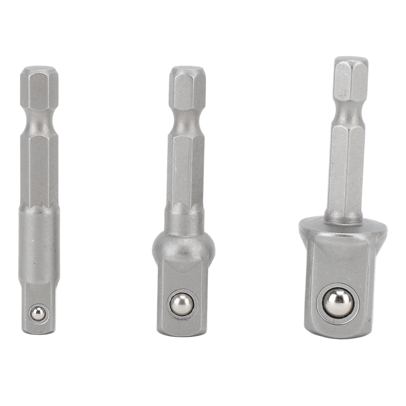 3 Pcs Power Drill Adapter Socket Set 1/4in 3/8in 1/2in Stainless Steel Hex Shank Square Head Drill Extension Rod