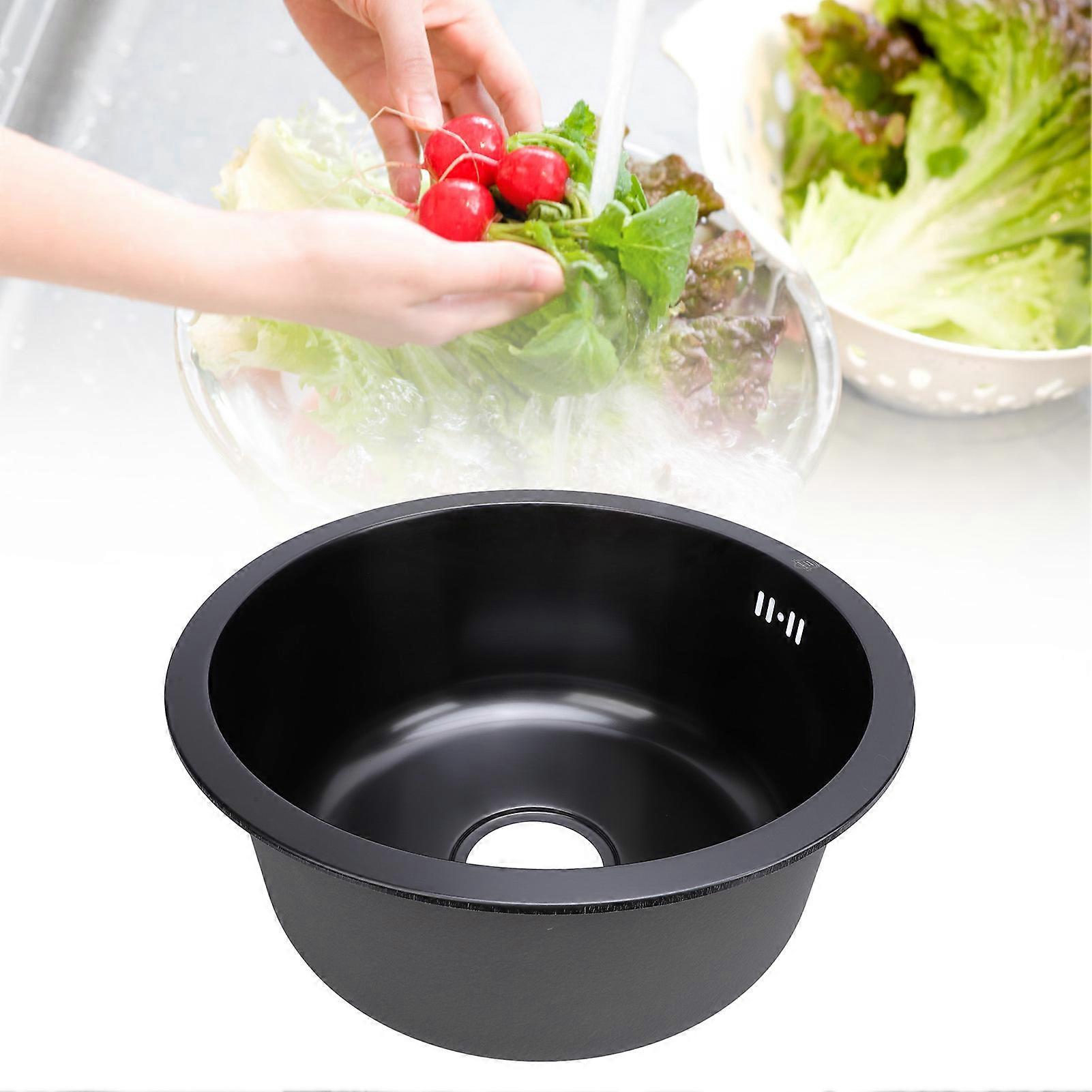 304 Stainless Steel Round Single Bowl Bar Sink 42x18cm Nano Black