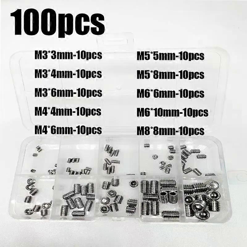 304 Stainless Steel Socket Head Hex Set Screw Assortment Kit Grub Screw Cup- Metric M3 M4 M5 M6 M8 Cup Point Grub Screw Set