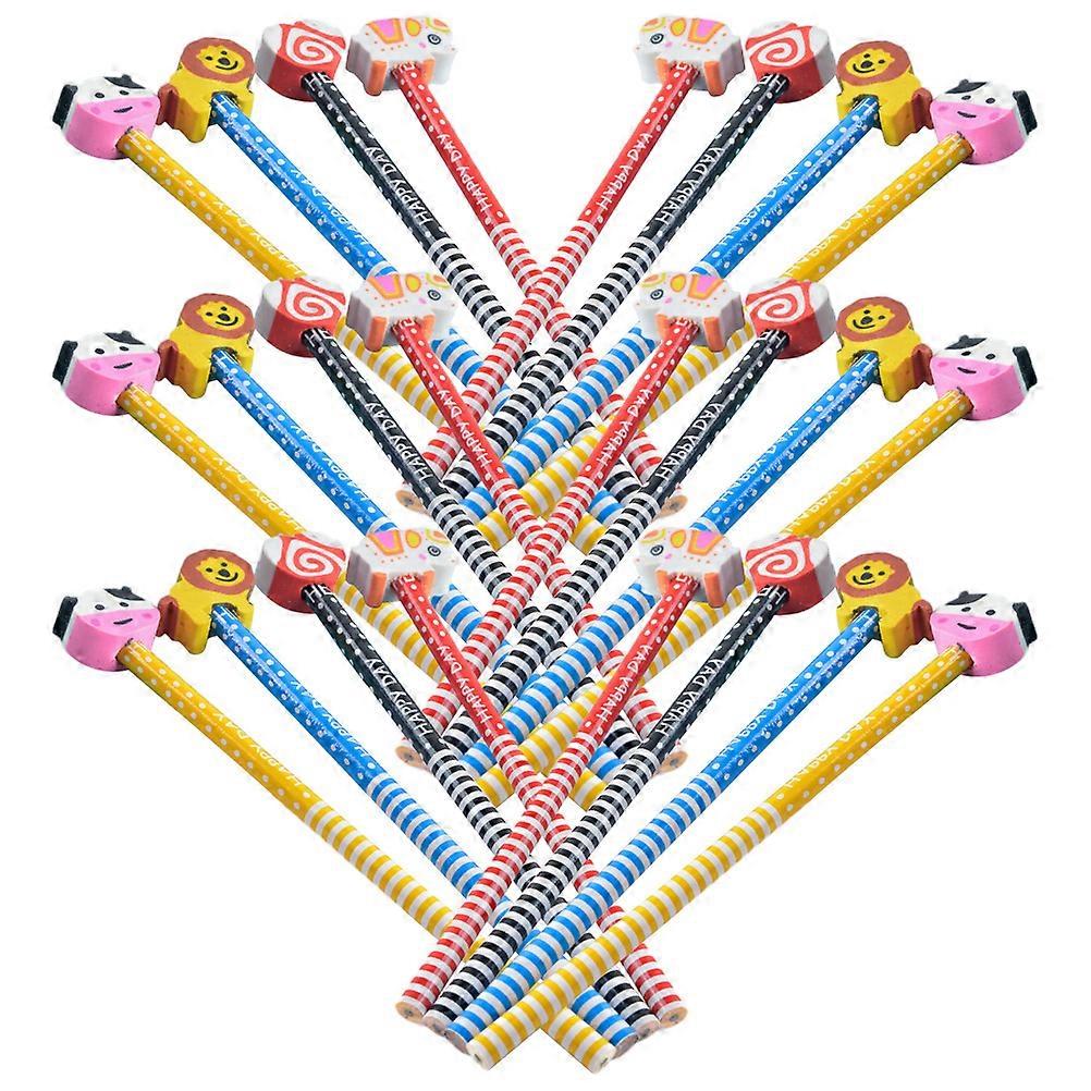 30pcs Cartoon Pencils with Erasers Smooth Writing & Fun Patterns for School and Home Use