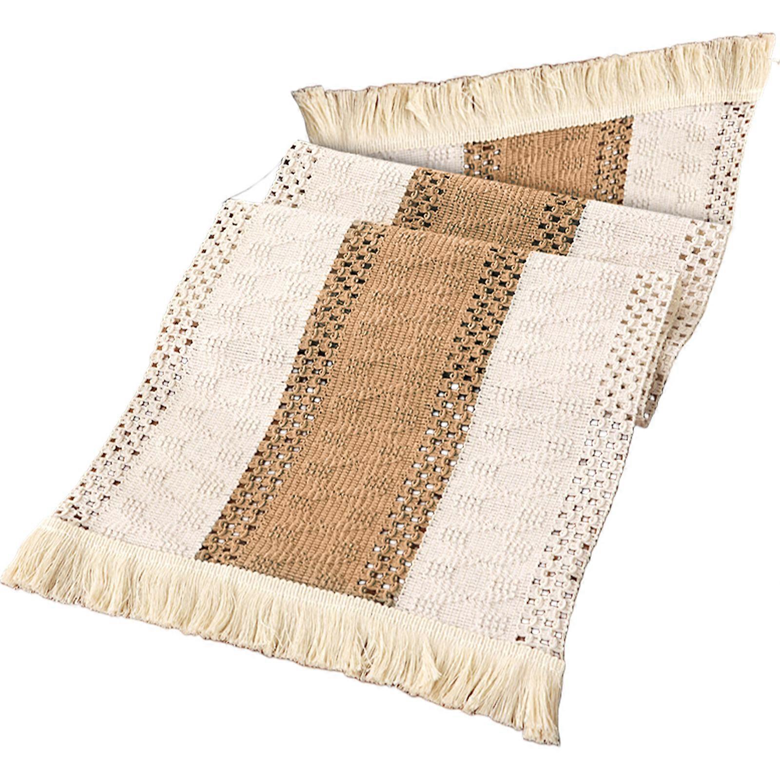 30x140cm Tassels Trimmed Table Cloth Polyester Materials Washable Textured Designs for Festival Setting khaki