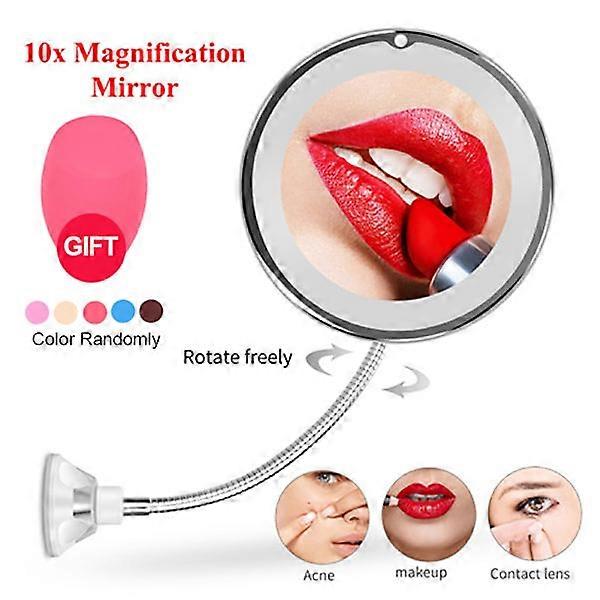 360 Degree Rotation Makeup Mirror LED Light Tri-color Adjustable Light 10X Magnification