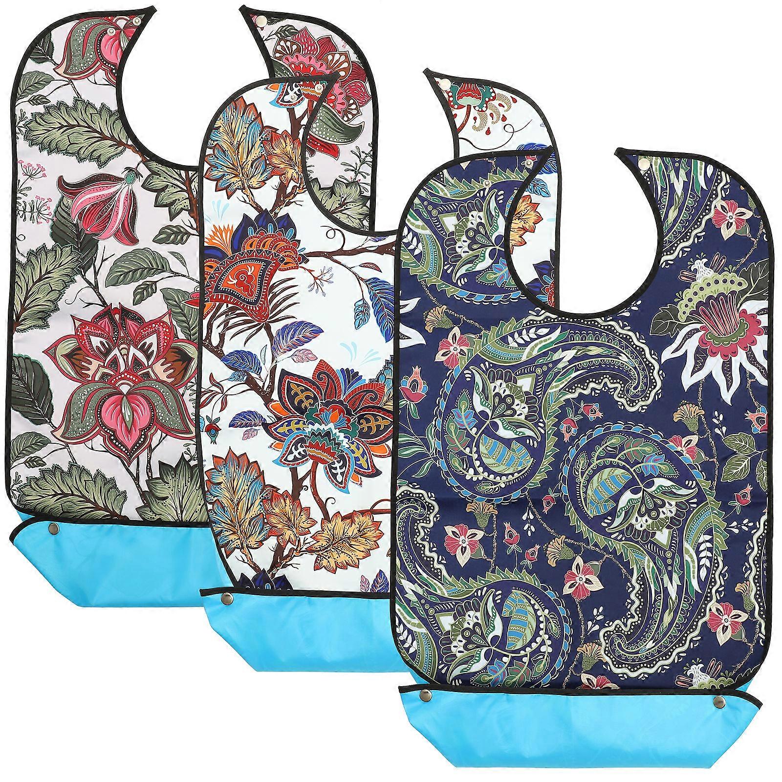 3pcs Adult Bib Decorative Adult Bib Elderly Eating Bib Seniors Bib Adjustable Strap Bib
