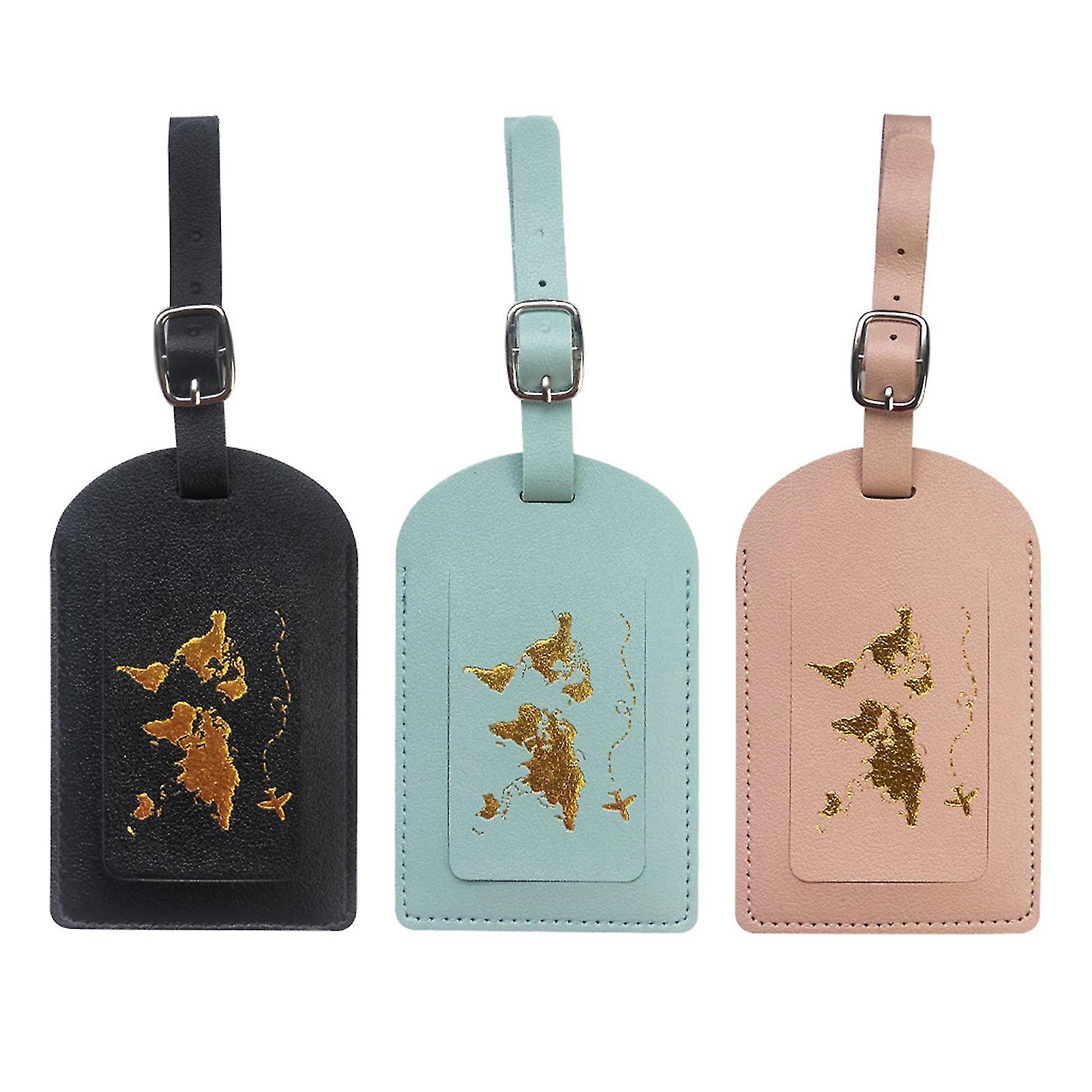 3pcs Luggage Tag Travel Suitcase PU Leather Baggage Label Business Trip Holder