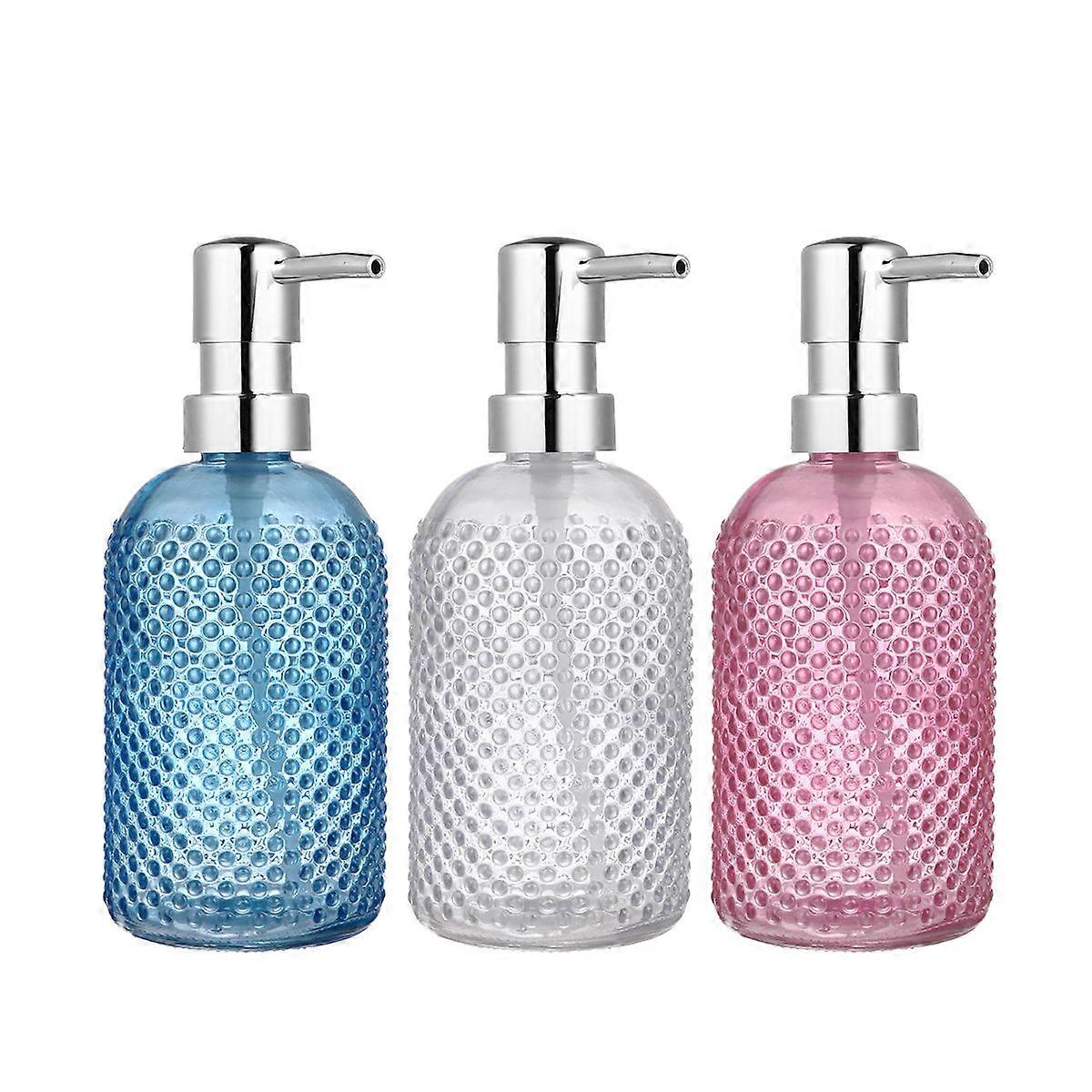 3pcs Glass Lotion Pump Dispenser Bottles for Shampoo, Shower Gel – Refillable Empty Containers with Easy Refill Design for Bathroom & Kitchen Use