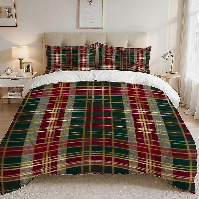 3pcs Plaid Pattern Printed Set Soft and Light Beige-Friendly Polyester Fabric