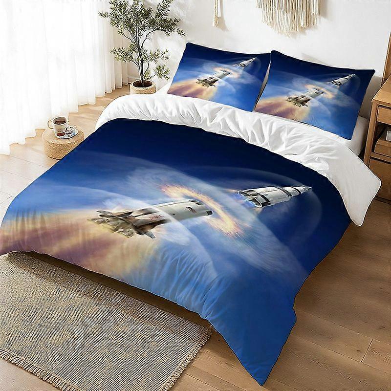 3pcs Rocket Launch Art Print Bedding Set Soft