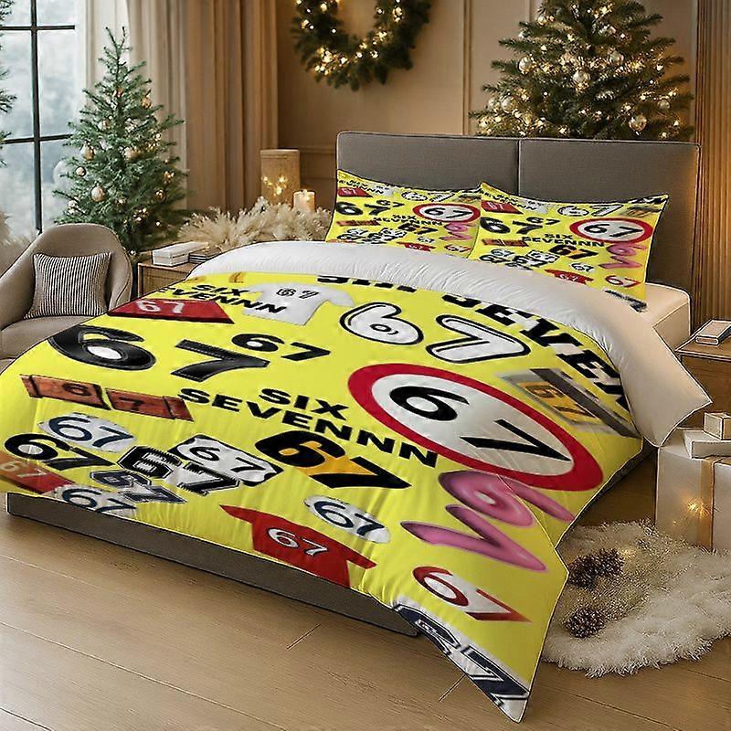 3pcs Sixseven Creative Number Collage Theme Printed Bedding Set | Polyester Wrinkle-resistant