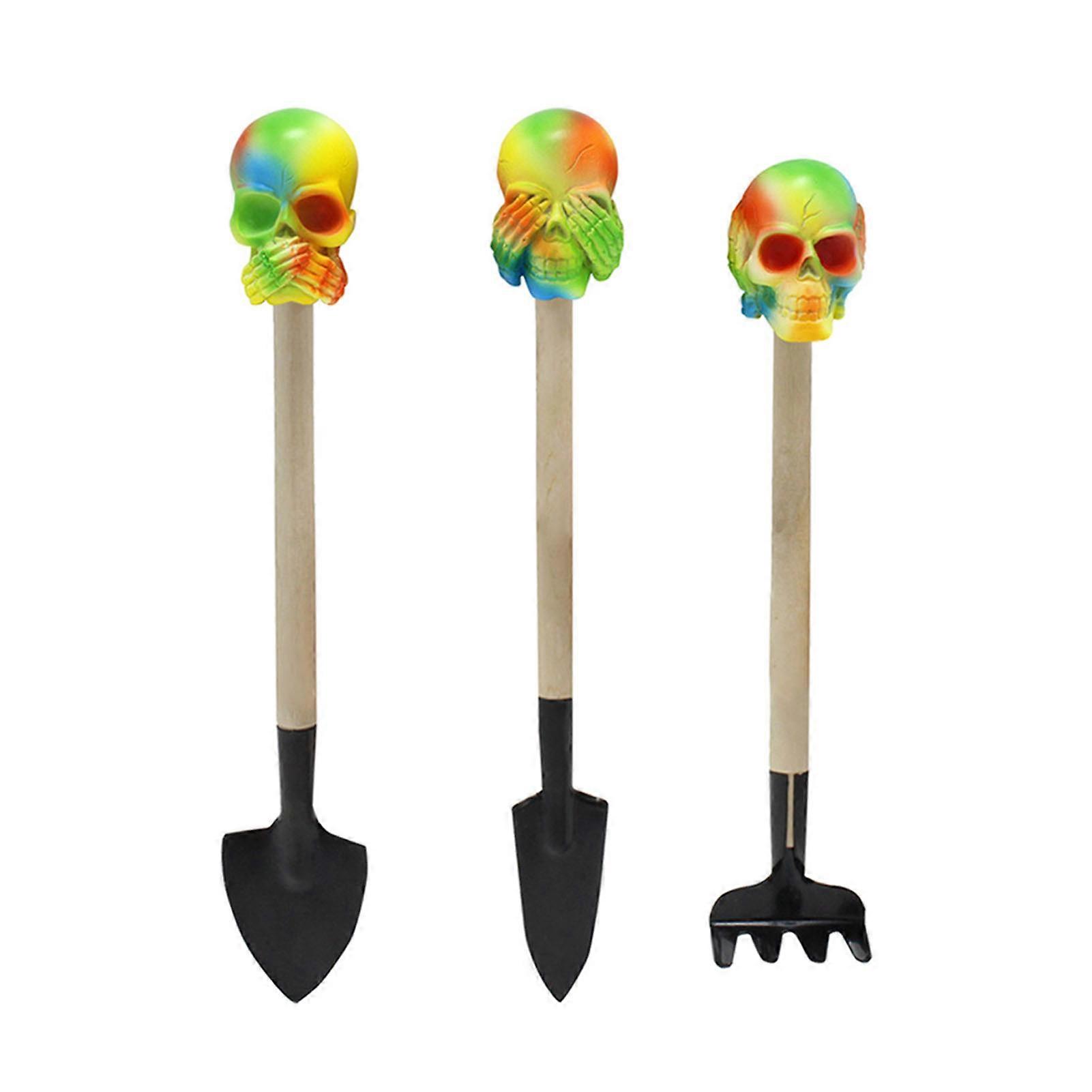 3PCS Skull Head Garden Tool Set Decorative Wooden Handle Long Lifespan Small Shovel Rake Tools