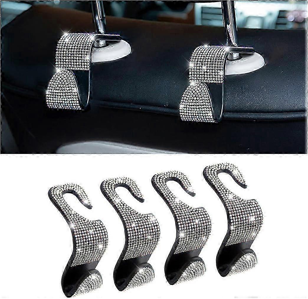 4PCS Crystal Bling Rhinestone Cars Back Seat Headrest Hooks, Car Headrest Hook